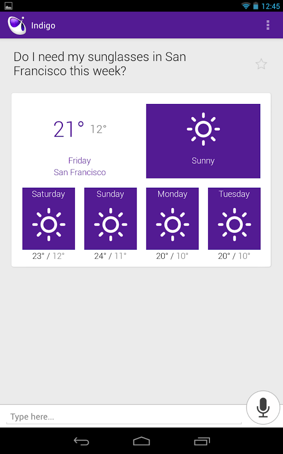 Indigo is a multi-platform, clever, Siri like personal assistant that can seamlessly start a conversation with you on your smartphone and carry on with it on your tablet or desktop and back again to your mobile. This makes Indigo the perfect personal assistant for users on the move.